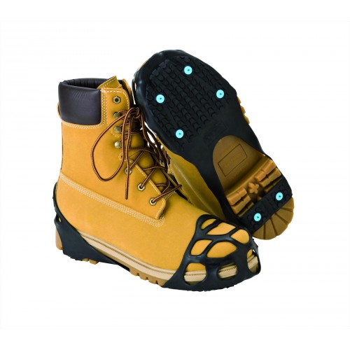 Specially designed to fi t oversized bulky footwear and boots with steel/composite toe caps. This traction aid is constructed with Tungsten-Carbide, non-sparking spikes for added safety.