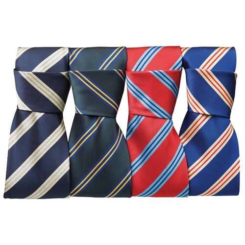 Premier Mens Striped Tie. Fabric : 100% Woven Polyester. Blade : Width 4", Length 57". Size : One Size. Colours : Bottle Green/Royal, Navy/Cream, Red/Sky, Royal/Cream.