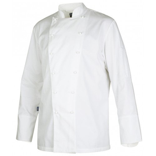 The PROJOB Mens' Chef Jacket is a classically styled chefs jacket that has been fashioned from 100% cotton stain for class, style and superior performance. This long sleeved style with mandarin collar and button front will present a 5* image when a chef comes to front of house to receive accolades from satisfied customers. Weighing 260gsm this 100% cotton chefs jacket drapes beautifully and washes well in a regular machine wash. The removable pearl buttons make ironing the jacket easy so that it retains a professional appearance. Sizes: XS, S, M, L XL, 2XL and 3XL.