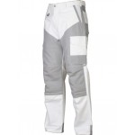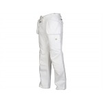 Two hanging nail pockets that can be tucked in, with extra pockets, one with tool loops. The nail pockets are reinforced with 100% Cordura. Deep side pockets with room for the hanging pockets. Two D-rings. Two adjustable hammer holders. Leg pockets with telephone pocket, pen pocket and tool pocket. Folding rule pocket with tool pocket and knife button. Knee protector pockets in Cordura, opening from the inside, height of knee protectors adjustable. Rounded knees. Bottom of back side of legs reinforced with Cordura. Extra wide back pockets. Back and leg pockets have loops for Inbags.