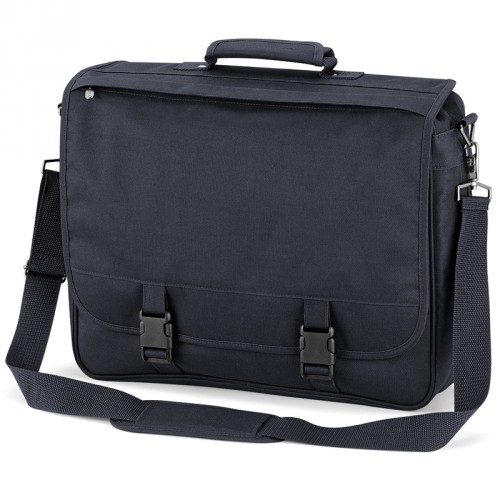 Quadra Portfolio Briefcase - QD065. Ideal for High School. Adjustable webbing shoulder strap. Internal organiser section. Wheelie bag strap. Expandable. Approx Dimensions: 41 x 34 x 10cm. Embroidery: 15 Tubular Hoop. Approx Print Area: 35 x 16cm. Fabric: 600D Polyester.