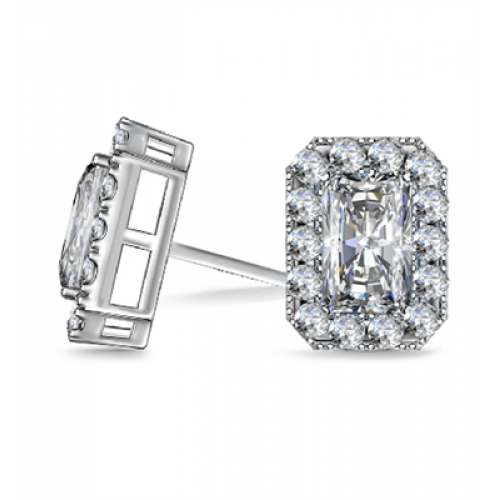 Radiant Diamond Single Halo Earrings