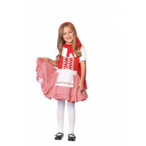 2PC.Little Miss Red Riding Hood includes gingham peasant apron dress with woven ribbon trim and matching cape.,