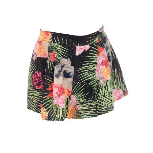These black flared shorts feature an all over Reina Muerte print. They fasten with a side zip and have side pockets. These shorts are the perfect item for your summer wardrobe. 70% Cotton 28% Polyester 2% Spandex. Machine washable at 30 degrees.