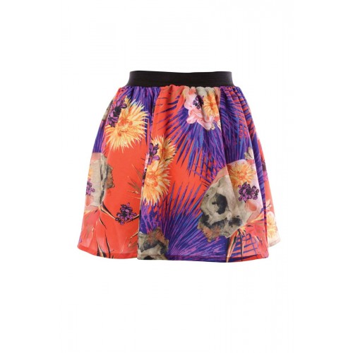 This floaty mini skirt features an all over Reina Muerte print. It has an elasticated waist band and side pockets. 100% Polyester. Machine washable at 30 degrees.