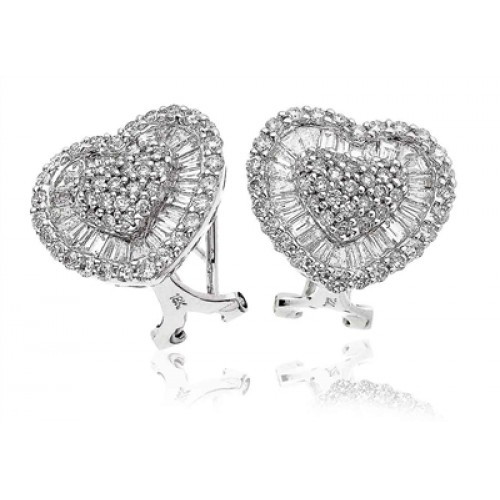 Round & Baguette Diamond Cluster Earrings