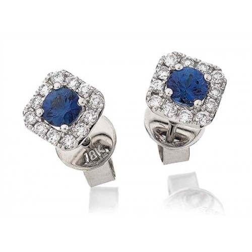 Stunning classic blue sapphire and diamond cluster earrings. Perfect as a gift for your loved one.