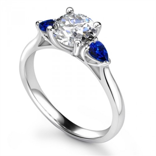 A modern diamond trilogy ring design within our collection, with a centre round diamond and two blue sapphire. This is a unique design that should not be overlooked.