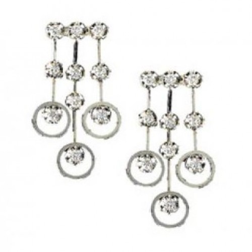 A beautiful designer pair of drop earrings. With round brilliant cut diamonds set in a prong setting.