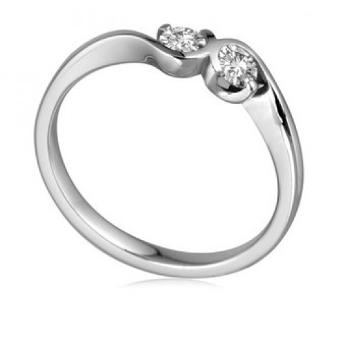 A beautiful two stone diamond ring each with 6 claws. This is a unique ring symbolising the union of two people. The round diamonds are set in a rex setting and are mounted on a 'D shape crossover shank