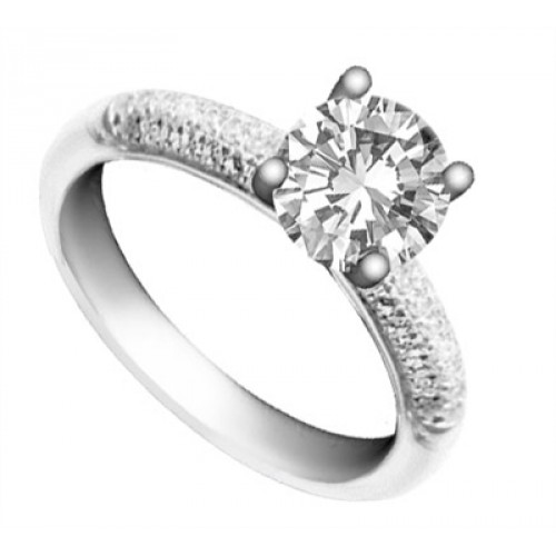 A Round Brilliant cut shoulder set ring with multi Round Brilliant cut diamonds placed within the shoulders in a Pave Setting.