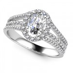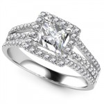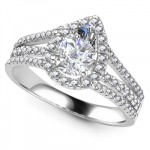 A beautiful diamond halo ring. With a centre round brilliant cut diamond set in a 4 claw setting, with a triple row of round diamonds on the shoulders.