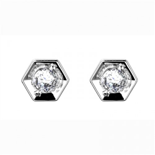 A beautiful pair of round diamond earrings, set in a hexagon shaped setting.