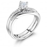 This is one of our popular bridal sets, with a round brilliant cut centre diamond, with round brilliant cut diamonds set on the shoulders of the engagement ring, and matched onto the complimentary wedding band.