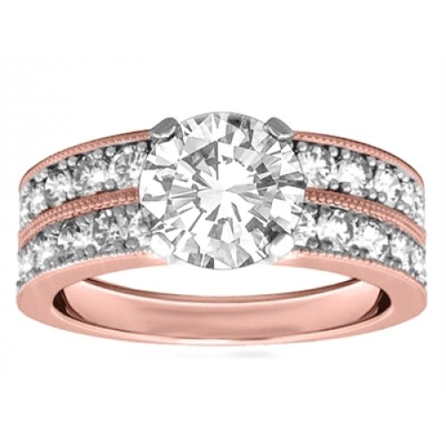 Round Diamond Shoulder Set Ring With Matching Band