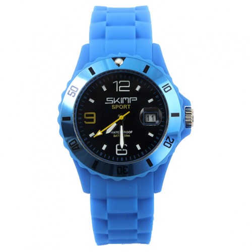 The Charmeuse watch by Skimp is the latest in trend with the silicon strap in bright colours. It will rival any ICE watch. This 38mm diameter case watch made from stainless steel and polycarbonate, has Japanese quartz movement which ensures accurate time keeping and is water resistant to 10 ATM. The date display has a magnifying glass for ease of reading. The watch has a rotating bezel for time keeping. The watch comes in a range of colours to suite every occassion. The watch comes with a full Skimp manufacturer's guarantee. Japanese quartz movement Water resistant to 10 ATM Case diameter 38mm (Small) in stainless steel and polycarbonate Date display with magnifying glass Silicon rubber strap Rotation bezel Luminescent hours and hands Clasp - traditional buckle Manufacturer's guarantee