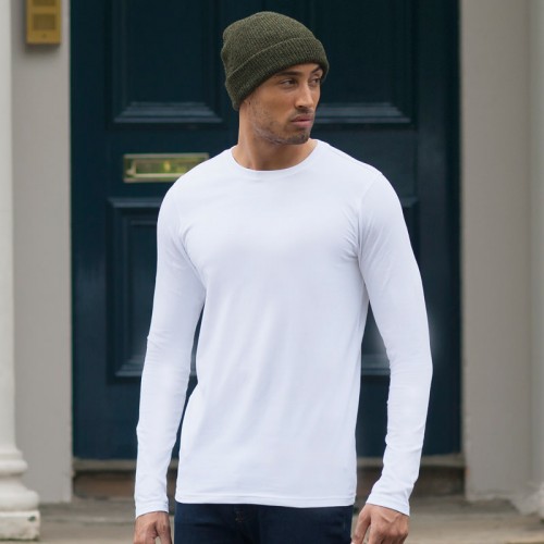 The SF Men Feel Good Long Sleeved Stretch T-Shirt has a tear-out Skinnifit label. Ribbed crew-neck with back-neck tape. Enzyme wash for unique soft hand feel. Modern long line fit. Twin needle stitching at sleeves and hem. Matches Ladies' SK124 and SF/SK121 Feel Good SS Stretch T Washing Instructions Wash at 40 degrees. Wash as synthetics. Do not bleach. Do not tumble dry. Wash dark colours together. Re-shape whilst damp. Dry out of direct heat and sunlight. Iron at medium temperature on reverse.
