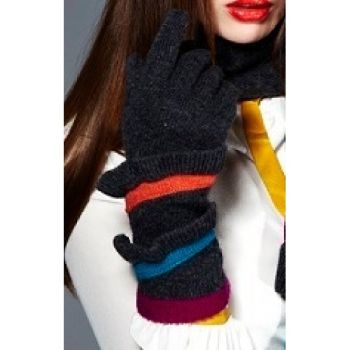 Spiral pleated ruffle with stripes gloves in charcoal/orchid/jade/rust.