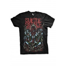 Short sleeved black tee, featuring a round neckline and a large 'Suicide Silence' Demon print. This is a regular fitting design. 100% Cotton Machine washable at 30 degrees