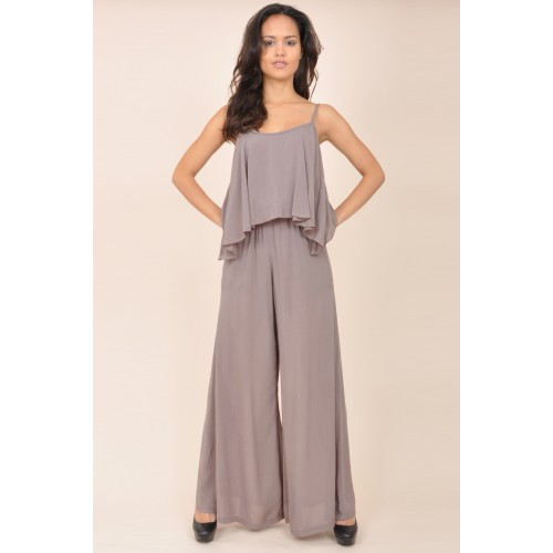 Drape flare lightweight jumpsuitCape back detailElasticated waistlineAdjustable Straps100% ViscoseModel's height is 175cm / 5'9 and she wears a UK size 8 / S