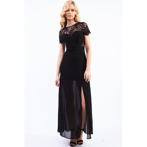 TFNC Evening Dress - Delicate chiffon fabric - Sweetheart neckline with lace panel - Key whole button fastening - Zip to reverse - Lace side cut outs - Mini length with maxi sheer overlay - Slit to side of skirt Care: 100% Polyester. Hand Wash Only.