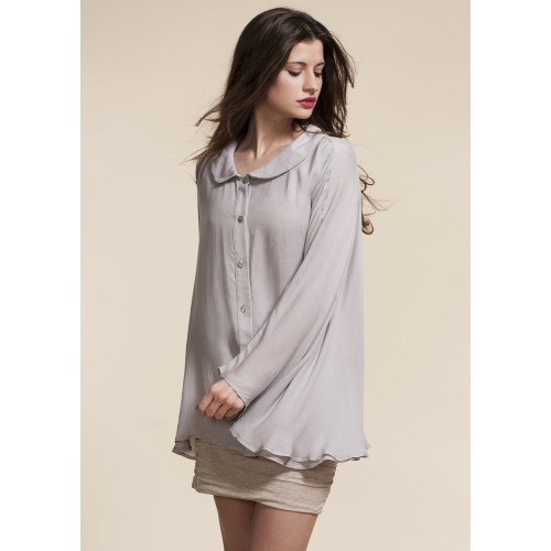 Cape style draped shirtPeter pan collarFront button fastening100% Viscose