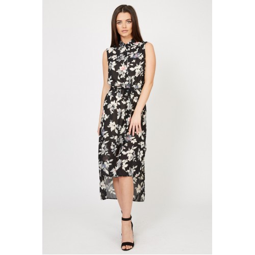TFNC Shirt Dress - Midi length - Shift fit - Floral Print - Sheer finish - Slits on both sides - Tie at waist Material: 100% Polyester Handwash Only.