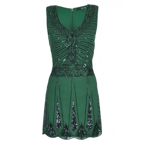TFNC Party dress - Delicate chiffon fabric - V neckline - 1920's sequin beaded detail - Concealed zip closure Care: 100% Polyester; Dry Clean Only.