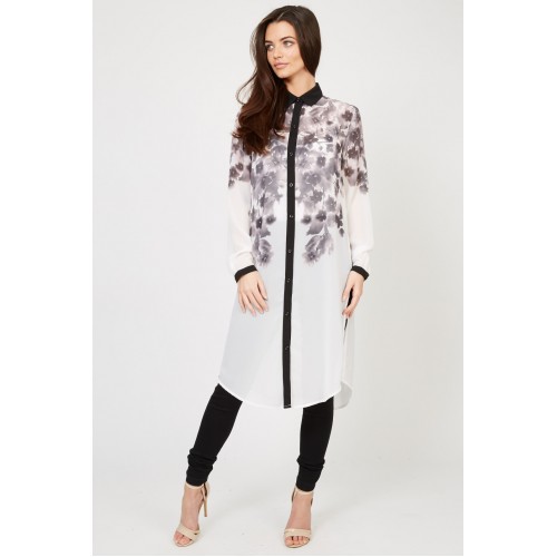TFNC Shirt Dress - Contrast Collar - Midi length - Shift fit - Floral Print - Sheer finish - Slits on both sides Material: 100% Polyester Handwash Only.