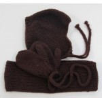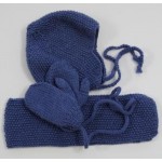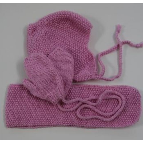 Moss Stitch hat, scarf and mittens set for toddlers knitted in machine washable wool. Mittens are joined with knitted strings to thread through coat sleeves