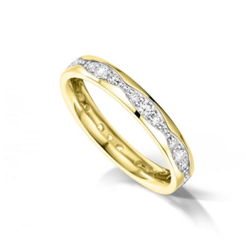 A beautiful 3mm court shape full set diamond wedding ring, with round brilliant cut diamonds set in a grain setting.