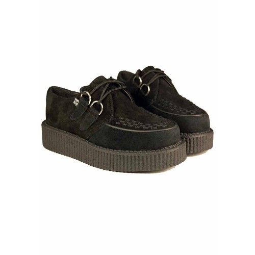 Black suede original creepers with leopard print cow hair upper. This design features a 2cm tall super strong Mondo Lo rubber sole and traditional 2 D-Ring lace-up. They are unisex and look great on guys or girls, women are advised to purchase a size smaller than usual. Ispired by the underground T.U.K create classic Rock n Roll footwear, favoured by celebrities and public alike. Black suede original creepers featuringa 2cm tall super strong Mondo Lo rubber sole and traditional 2 D-Ring lace-up. They are unisex and look great on guys or girls, women are advised to purchase a size smaller than usual. Ispired by the underground T.U.K create classic Rock n Roll footwear, favoured by celebrities and public alike.