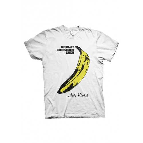 Short sleeved white tee, featuring a round neckline and large ‘Velvet Underground’ album cover print. This is a regular fitting design. 100% Cotton Machine washable at 30 degrees