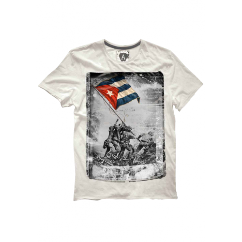 Amplified crew neck, off-white cotton tee featuring a distressed ‘Victory’ print. Each t-shirt is unique with a vintage finish and mini ribbed neckline. There is contrast stitching and raw edge detail around the collar, sleeves and bottom hem line. This is a slim fitting design. 100% cotton. Machine Washable at 30 degrees.